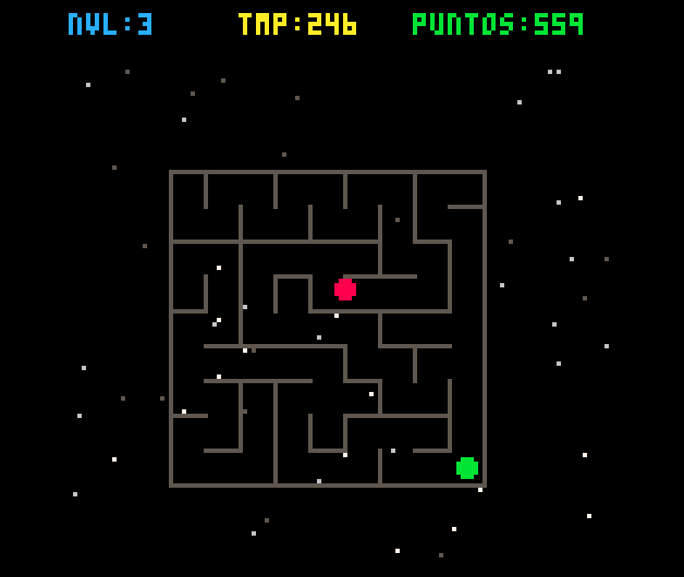 Eres el punto rojo, y debes buscar el punto verde que marca la salida del nivel actual. Cada nivel que avances, el laberinto es mayor, y el reto aumenta poco a poco.